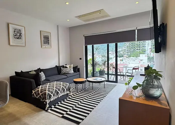 Con una piscina y una terraza, el apartamento Zona romantica cerca del muelle los muertos Puerto Vallarta está situado en el barrio Romantic de Puerto Vallarta, a 400 metros de Act II Entertainment Stages. Los huéspedes tienen acceso a Wi-Fi.